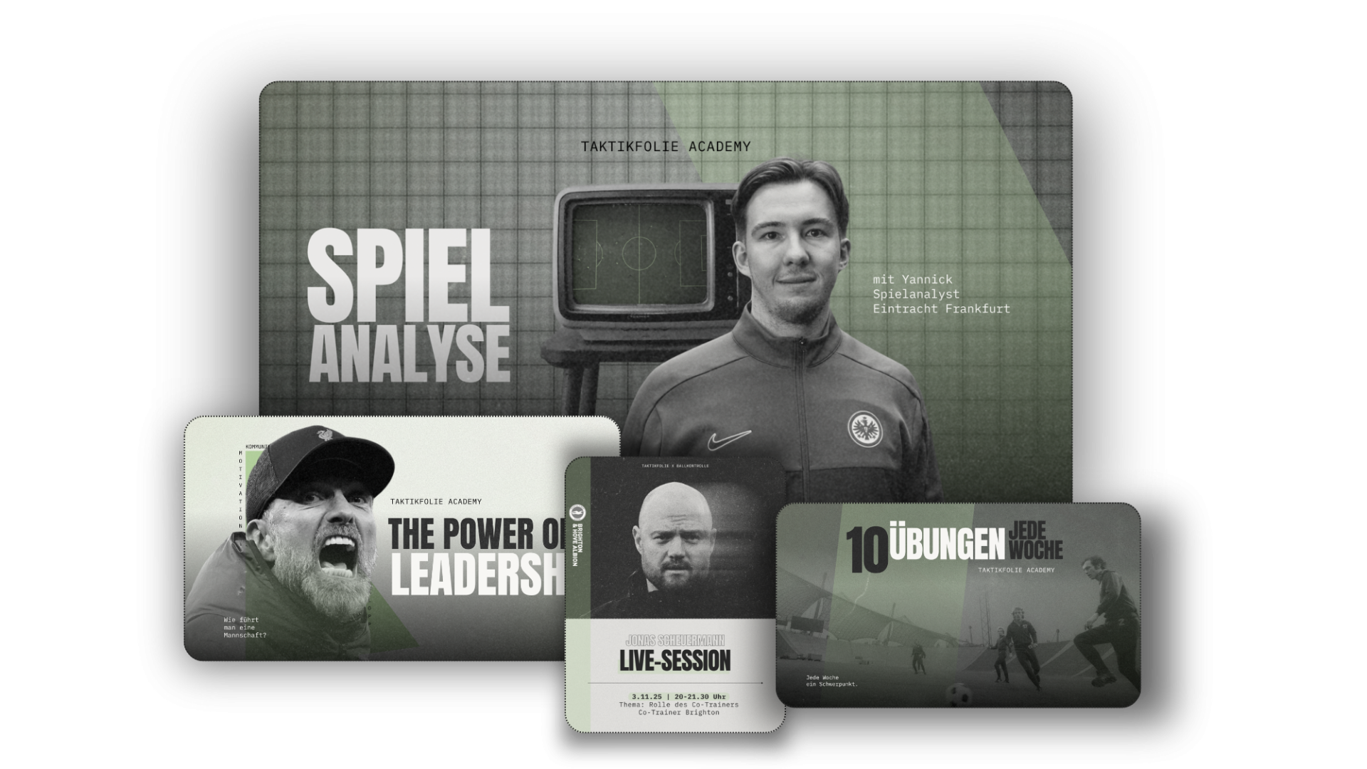 Eine Plattform. Alles, was du als Trainer brauchst. Taktik. Training. Spielanalyse. Leadership. KI-Coach. Wöchentlich neue Inhalte. Flexibles Monatspaket oder günstigeres Jahresabo. Wähle, was dir am besten passt.